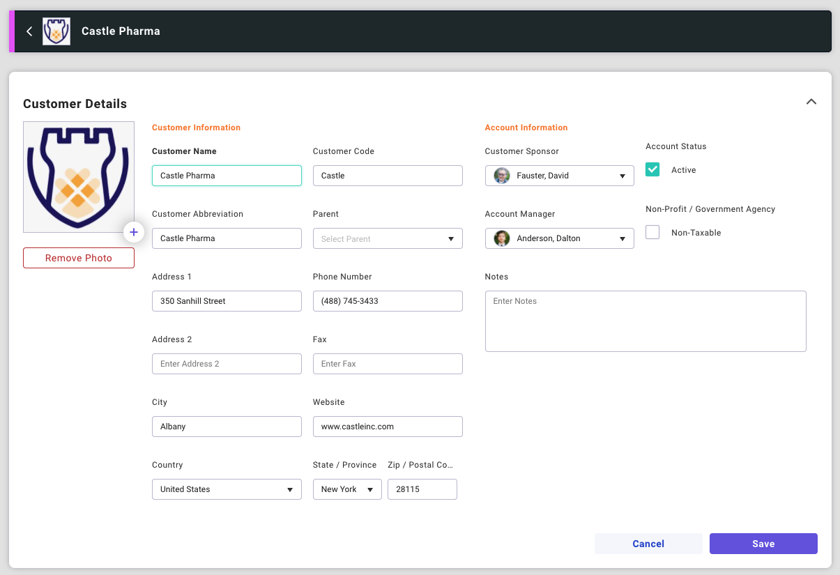 - Active customers are available for use, and are displayed in the drop-down lists within the application.