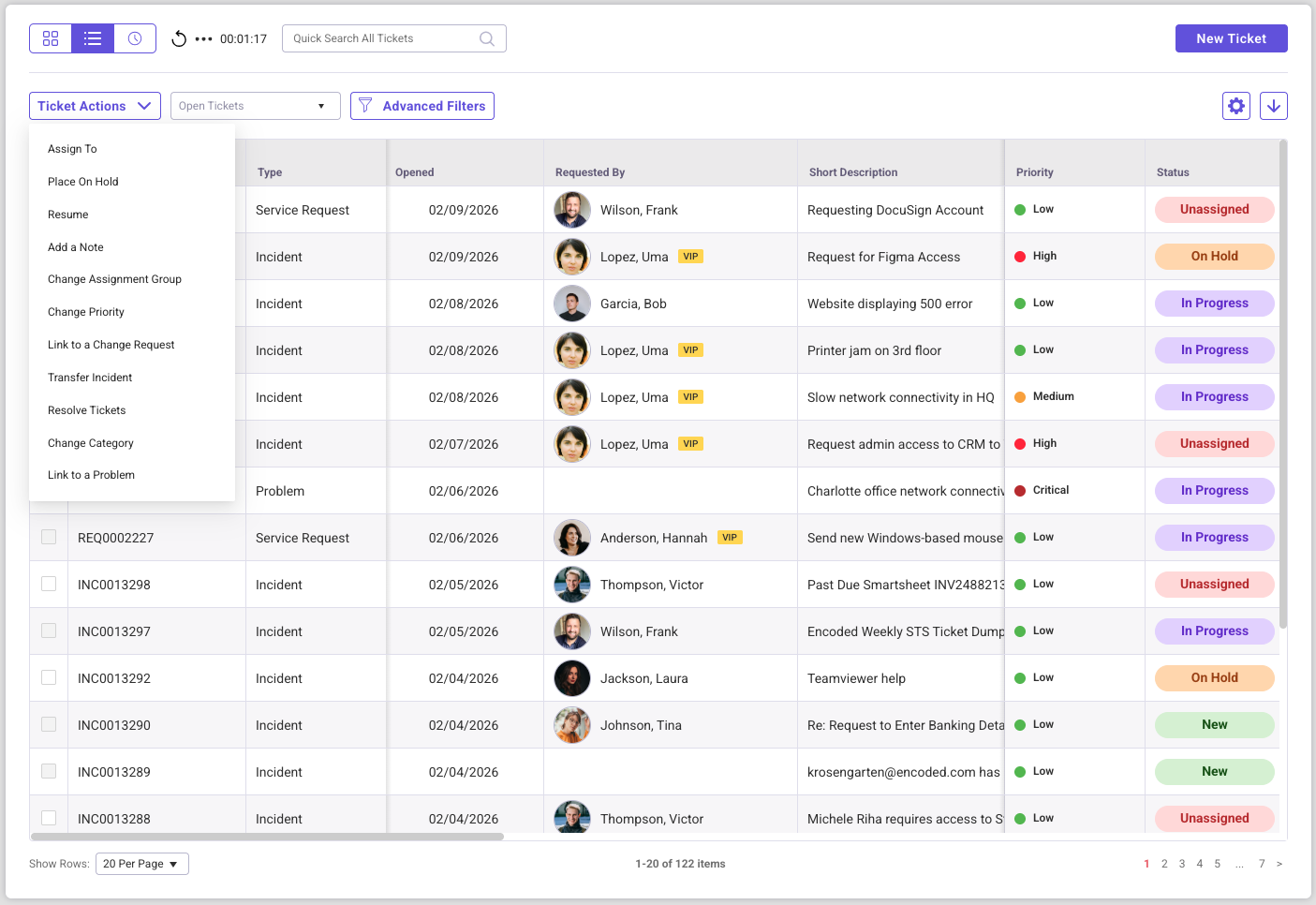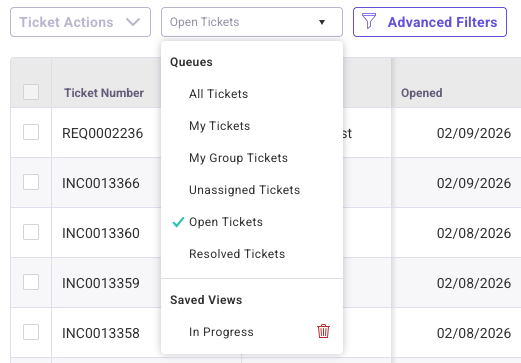From the Ticket List view, users can