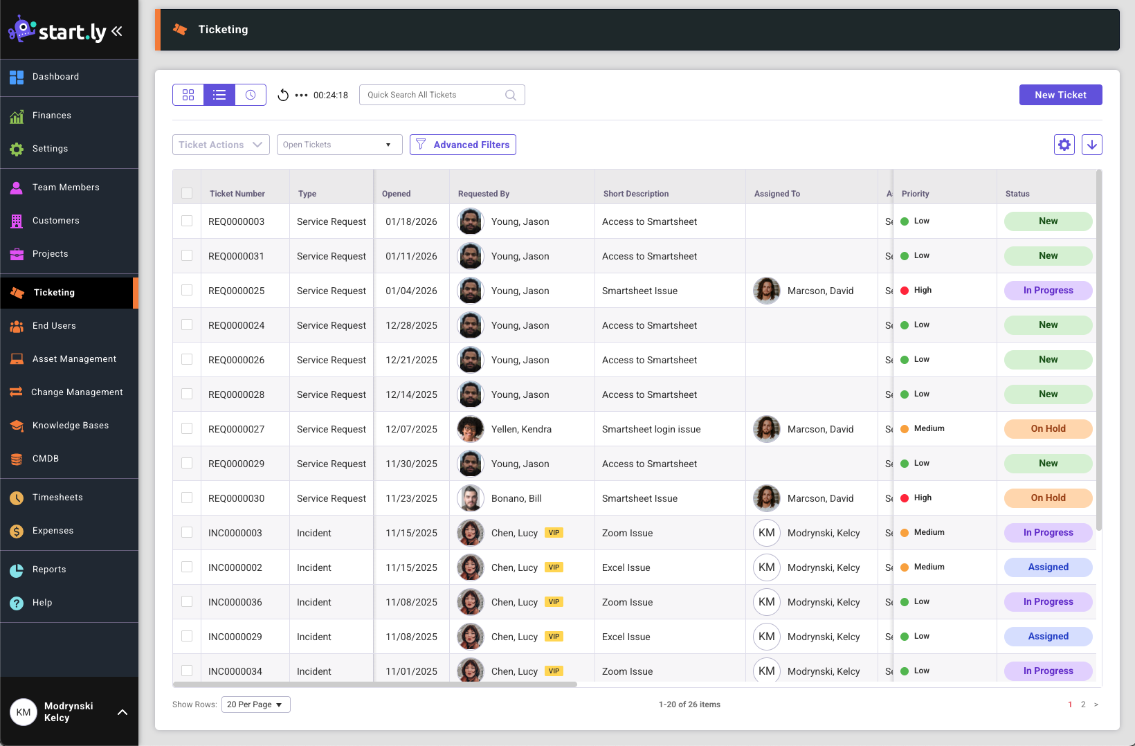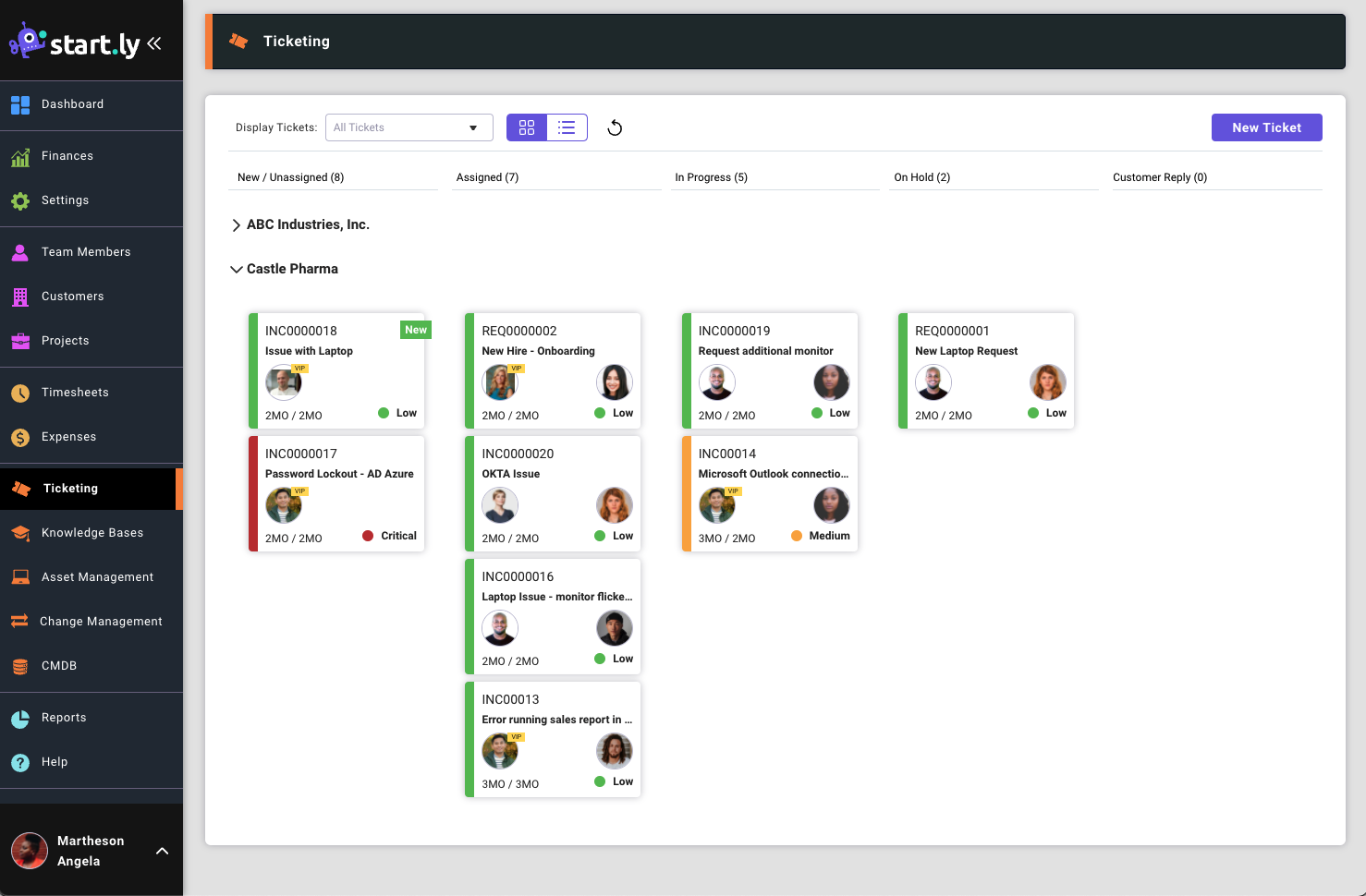 - Create a new ticket by selecting the New Ticket button in the upper right corner