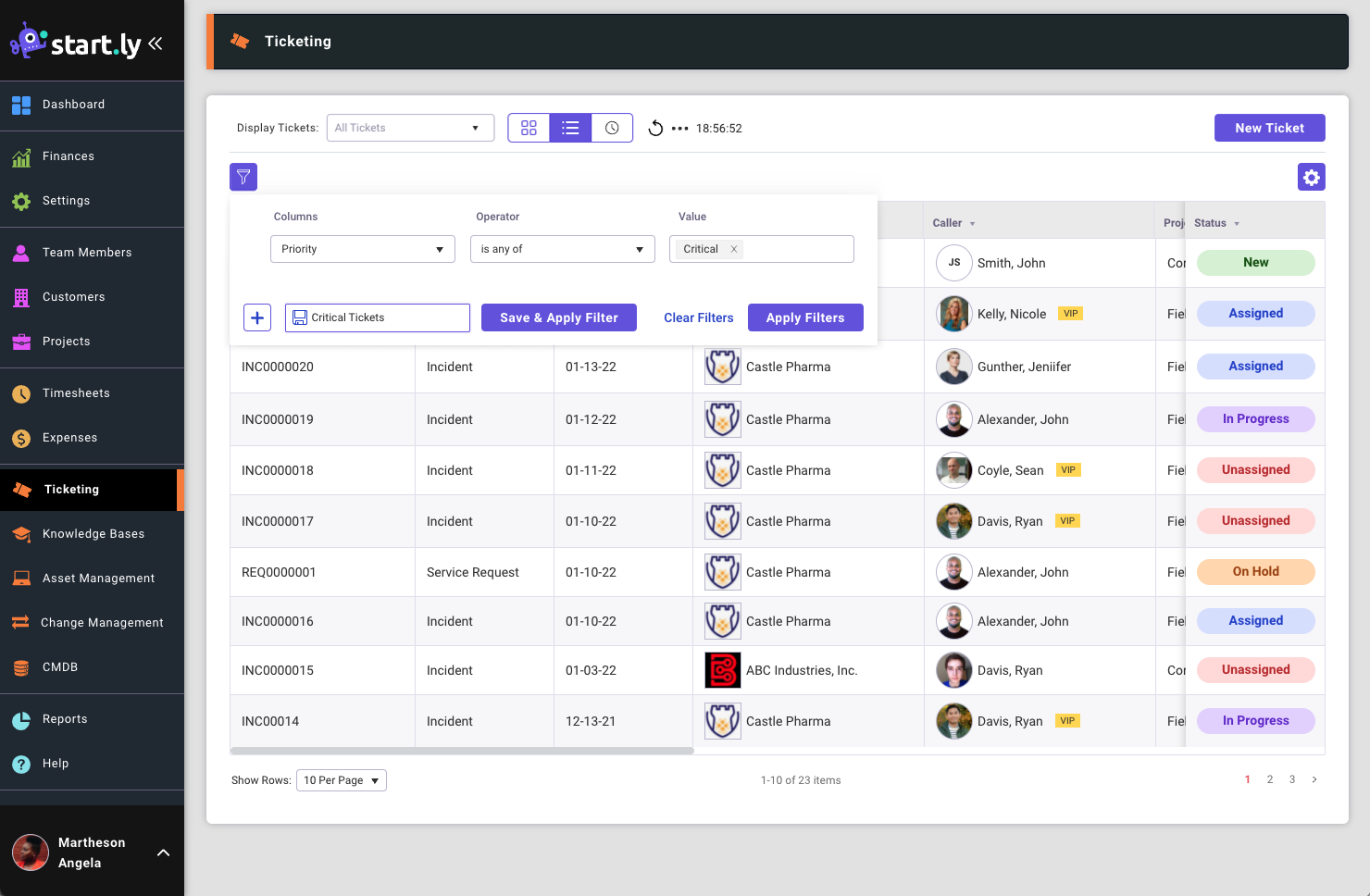 The Ticket List Filter allows the ability to quickly search and find what you are looking for. Filter by any available column in the Ticket List, select an operator and enter or select a value to complete your query. The Ticket List Filter also allows for complex filtering by adding additional queries to the search.